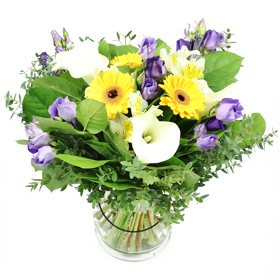 Celebrate life's special moments with our Majestic Grace Floral Arrangement, a beautiful mix of gerberas, calla lilies, lisianthus, and vibrant greenery. Each flower is hand-picked to ensure premium freshness and enduring beauty.